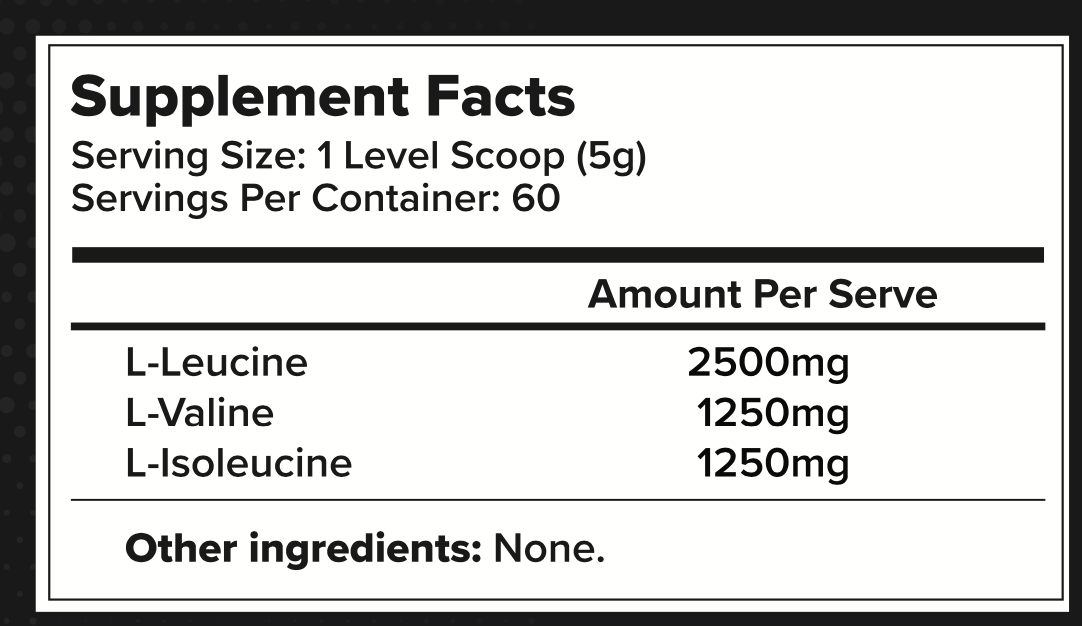 • لوسین (Leucine): معمولاً ۲.۵ گرم (در نسبت ۲:۱:۱)